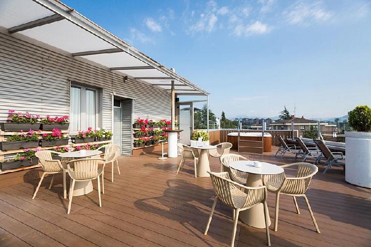 O hotel dispõe de 75 quartos com decoração vanguardista e está localizado no topo da cidade, numa área residencial exclusiva (Aiete), a apenas 50 metros de distância do centro. O hotel também está muito próximo do Parque Tecnológico Miramon, do Palácio Miramar, do Parque Empresarial Zuatzu, do Golfe Basozabal, de Chillida Leku e a apenas 5 metros de distância dos Congressos Kursaal. *Registro de Turismo: HSS652. *Hotel não fumador. *Aceita cães de estimação até 8 kg, mediante pedido e com custo extra.