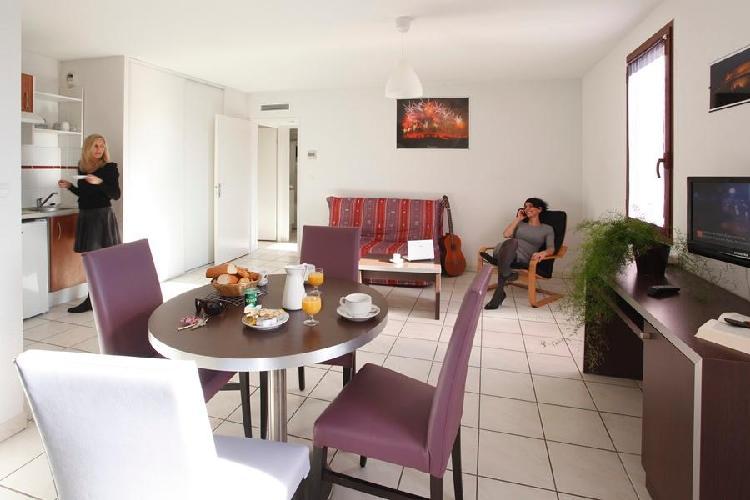 *.* Adonis Carcassonne La Barbacane Residence is pleased to welcome you in a green setting in Carcassonne city, classified as World Heritage site by Unesco. You will discover a beautiful region with an extraordinary cultural richness. Adonis Carcassonne La Barbacane welcomes you in one of its 70air conditioned apartments, fully furnished and tastefully equipped to make your stay a real success. We put at your disposal: a pleasant dining room for your family breakfast, and for business meetings, an equipped meeting room is available on request.