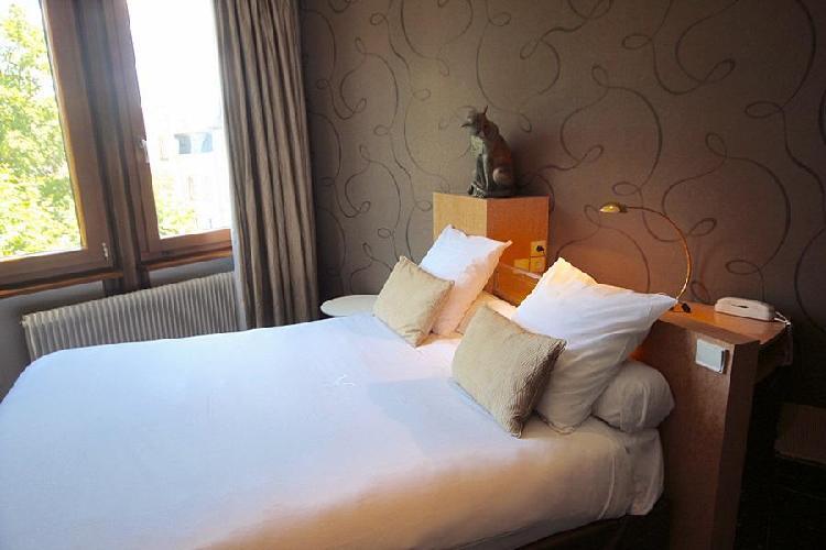 *.* Le Vaillant is a hotel located in the city center of Sélestat near the most visited sites of Alsace including the Haut Koenigsburg Castle, the Humanist Library, Europapark, and the Monkey Mountain. On the wine route, between Strasbourg and Colmar, the hotel is the ideal place to visit the region and its famous Christmas markets. The hotel Vaillant gives you the choice between communicating rooms, twin, triple or family. All rooms are very spacious and each room has its own identity, from the sweet contemporary to the exuberant-vitaminized. Rooms have large windows overlooking the park or the courtyard. Every morning breakfast buffet is served from 07:00 to 10:00. The hotel has a contemporary restaurant open every day that has seduced a regular clientele, including an amazing bar in the traditional atmosphere of a club. A gym and a sauna are available to all our guests. Just in front of the hotel are 50 free public parking spaces. The hotel also has 7 underground parking spaces. The reservation of places is mandatory at the time of booking.