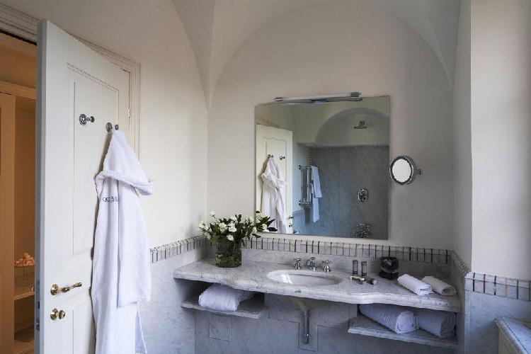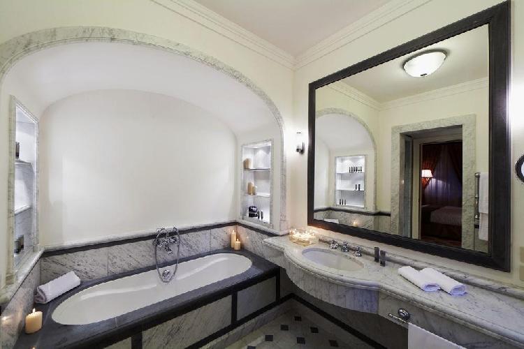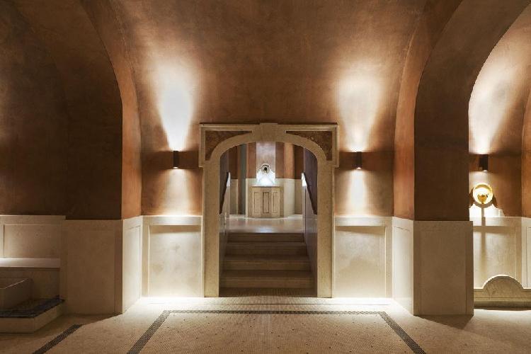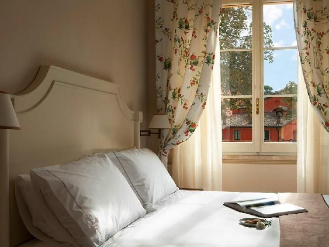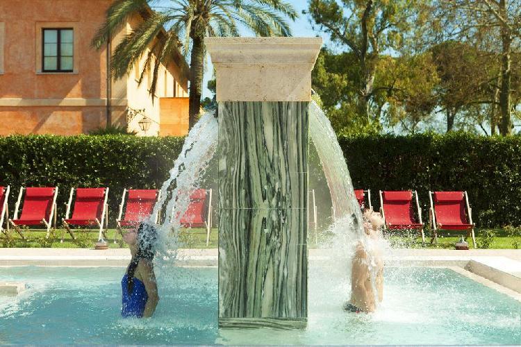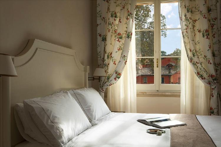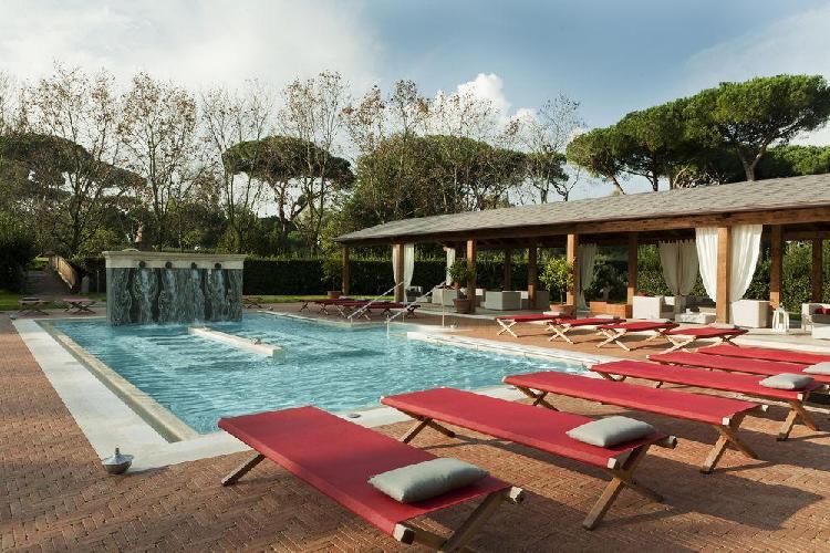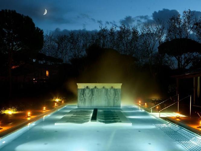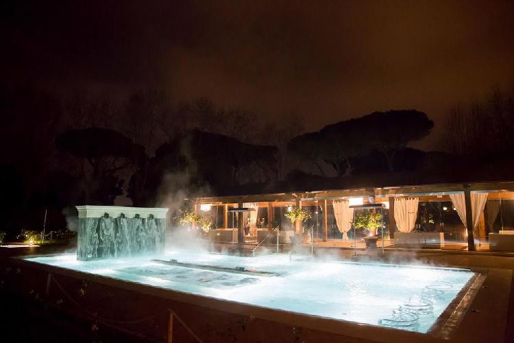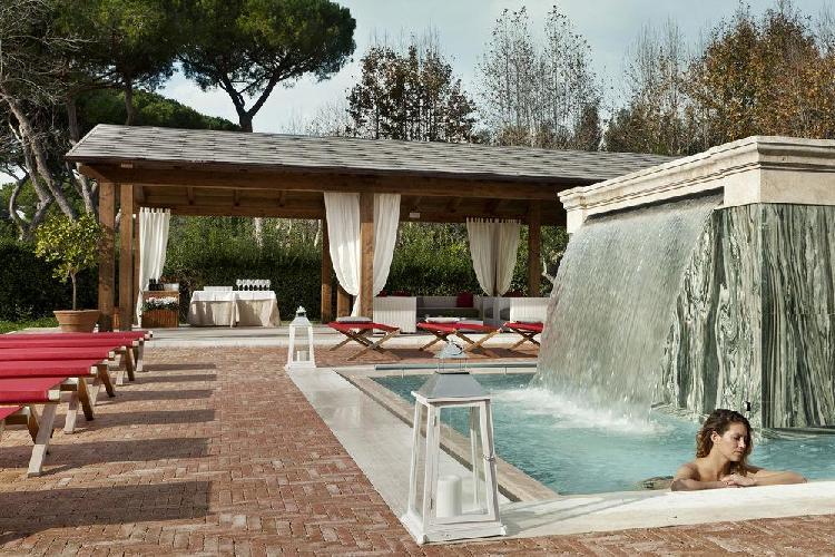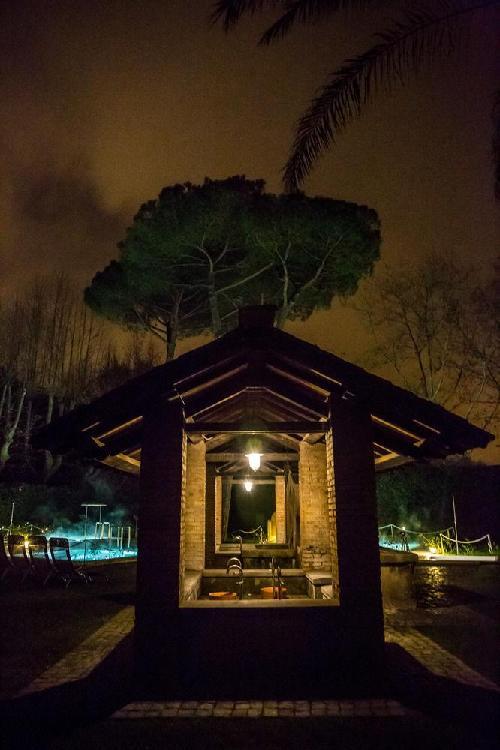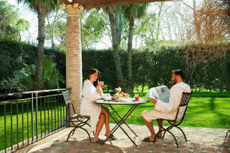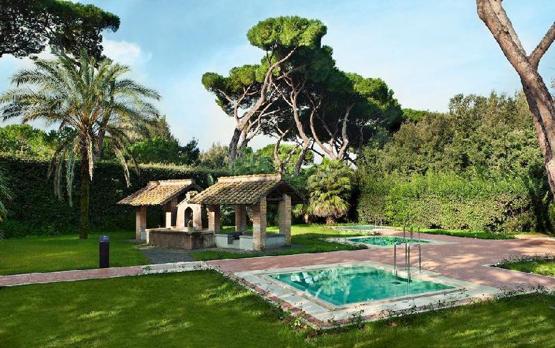 Um maravilhoso resort de edifícios de estilo anhos 20, momento da recuperação pelo príncipe de Torlonia em uma área arqueológica protegida. O QC Termeroma é um resort de luxo e com spa da marca Termeroma QC, localizado no fascinante parque natural de Trajano, entre antigos pinheiros romanos e louros perfumados, na estrada Portuense, construída no final do século 1 ac para ligar a cidade com o porto fluvial do rio Tibre. Mergulhados em verde, os quartos são banheiros claros e finamente decorados, com dez tipos de mármores romanos antigos e com vista para o parque e seus pinheiros romanos.
