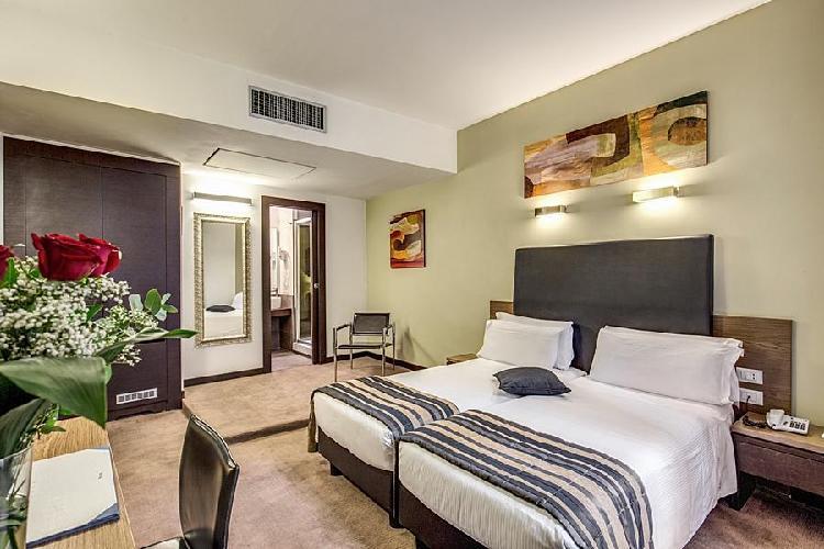 Magnificamente localizado no centro histórico renascentista da cidade, o Hotel Rinascimento Roma oferece acomodações confortáveis e excelentes serviços, acolhendo todos os tipos de férias, para uma agradável e tranquila pessoal stay.The cortês na recepção terá todo o prazer de assistir às suas consultas. No lazer, você pode ficar ligado aos seus entes queridos através da instalação de internet disponíveis no hotel ou relaxe no espaçoso átrio e conversar com os convidados do companheiro. Não tem acesso para deficientes físicos